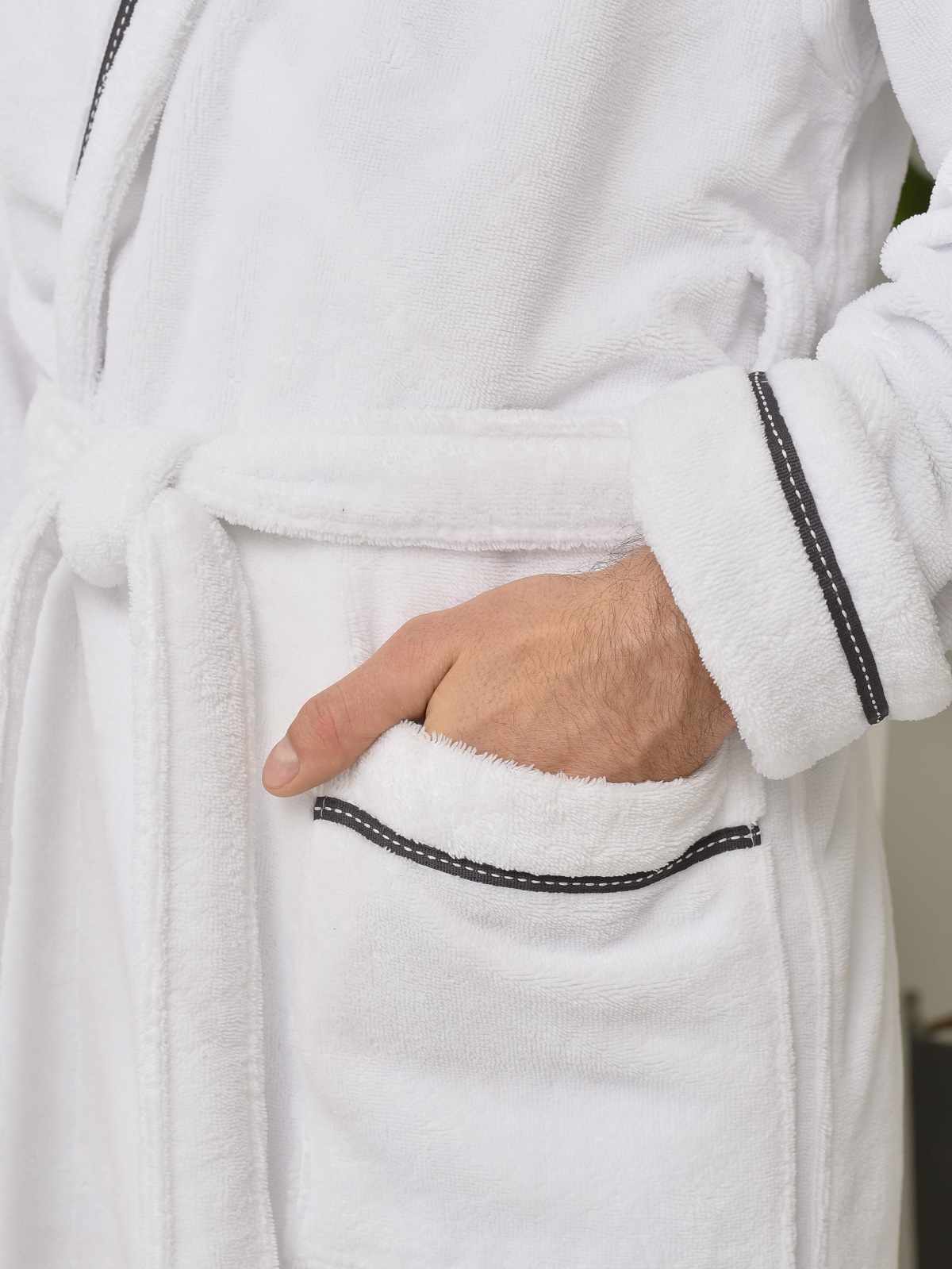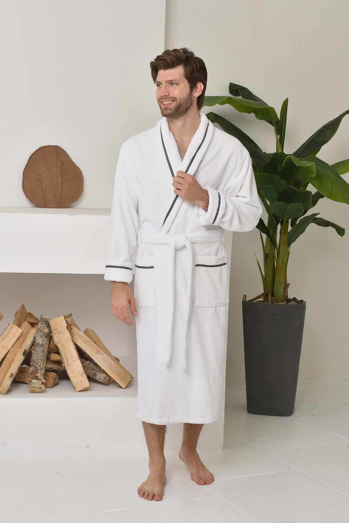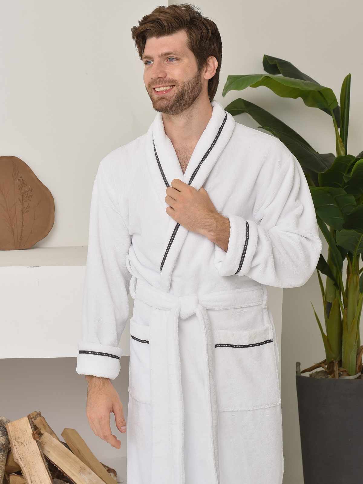Базовая классическая модель для тех мужчин, которые предпочитают халат с ненавязчивыми элементами декора. В данной модели очень гармонично и благородно смотрится декоративная стильная отделка по шальке и манжетам в виде ленты, выполненной в одном тоне с основным цветом халата. Халат изготовлен из ткани Triga Bamboo. Это уникальная технология в изготовлении ткани! К телу - натуральный бамбук, который благодаря своим свойствам прекрасно впитывает влагу и позволяет телу "дышать", верхний слой - тонкий велюр из микрофибры, придающий халату легкость и необычайную мягкость.
