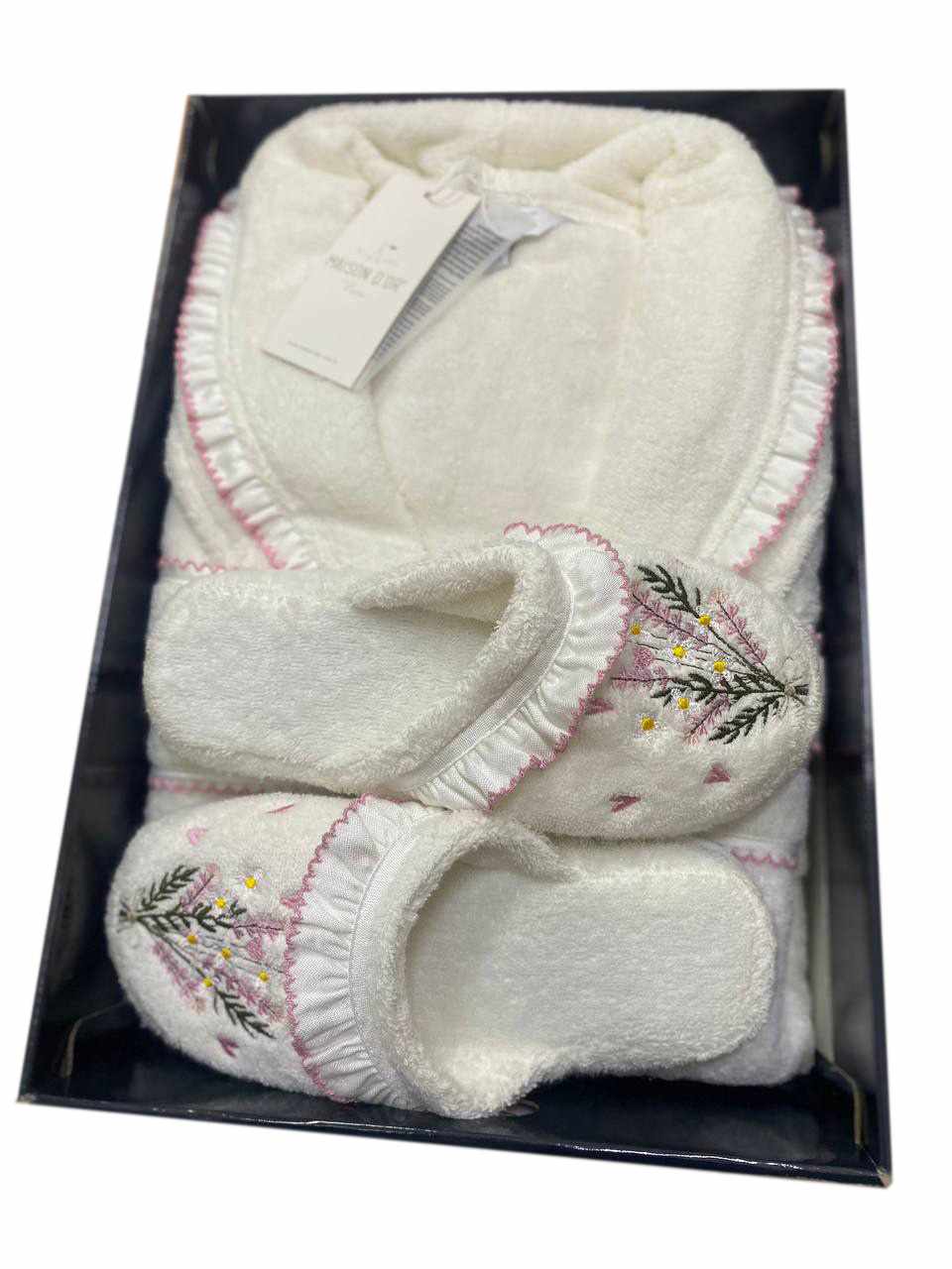 Халат женский махровый с тапочками MAISON DOR LENA VOLANT крем