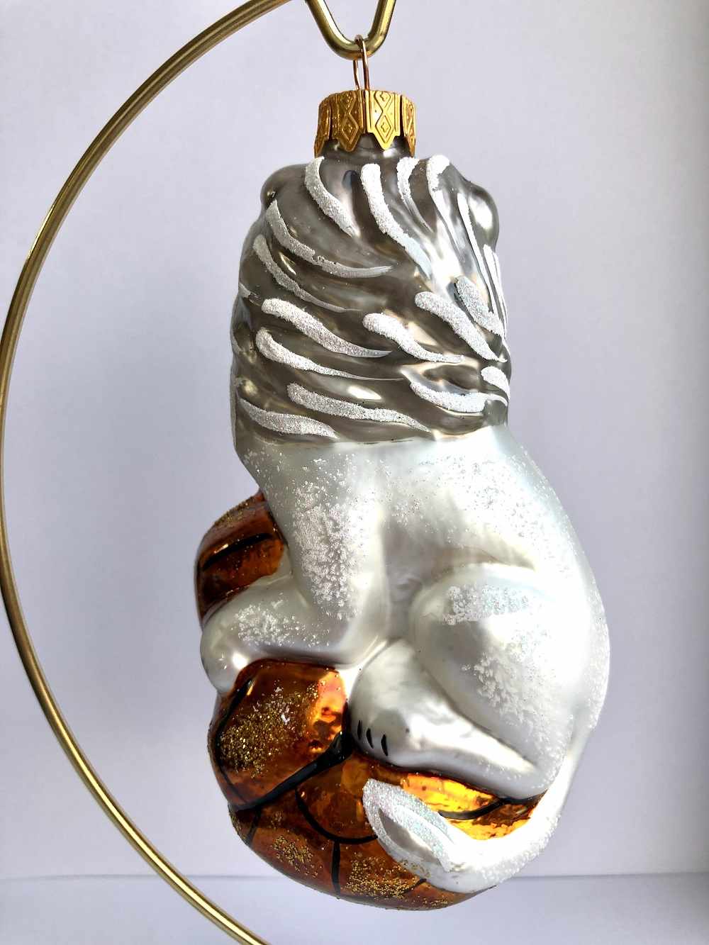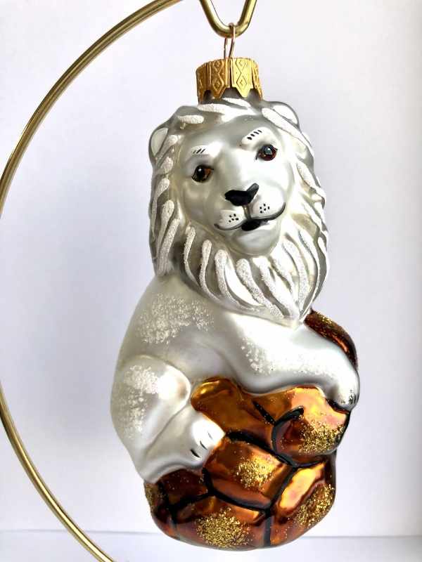 Стеклянная игрушка на елку "ЛЕВ" белый 12 см
