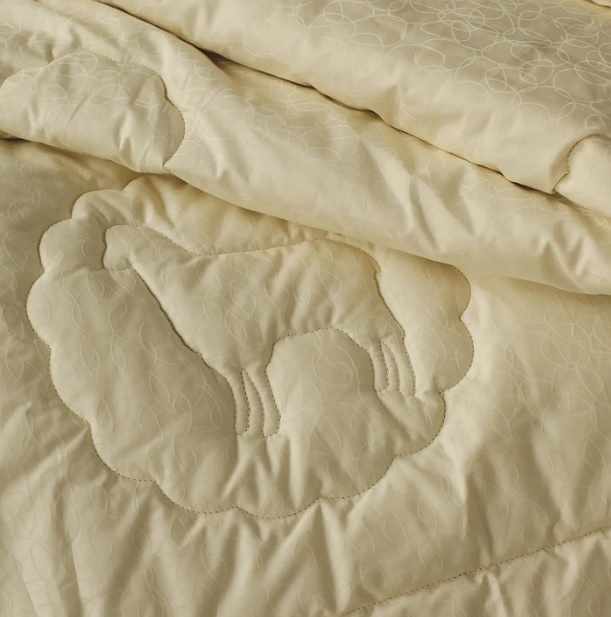 Наполнитель на 85% состоит из пуха овец монгольской породы, что придает одеялу объем, легкость и комфорт. Овечья шерсть мягкая, не раздражает кожу, хорошо пропускает воздух, впитывает, но при этом очень быстро испаряет влагу. При правильном уходе одеяло прослужит до 10 лет. Материал чехла — сатин-жаккард. Особое сложное плетение делает ткань плотной, износостойкой, гладкой и очень красивой. Одеяло имеет фигурную стежку с изображением овцы. Такой вид стежки плотно держит наполнитель, придает элегантный внешний вид и является уникальной особенностью одеяла. Подойдет для тех, кто любит спать под шерстяными объемными одеялами. Также станет отличным подарком, олицетворяющим уют и тепло
